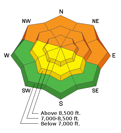 Travel Advice: Avoid being on or below steep slopes facing northwest to north to east on all elevations.