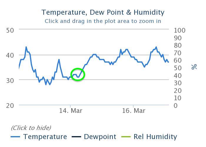 Mountain temperatures are in the mid to upper 30s. Overnight lows were around midnight and we've been warming slowly since then.