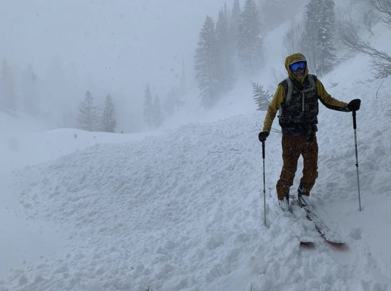 Avalanche conditions became very reactive and touchy within the new snow with the passing of the cold front yesterday afternoon.  Many observers reported some naturaling below cliffbands and in some of the steepest terrain.  On steep slopes, it was easy to trigger shallow loose dry and 8-12" deep soft slab avalanches on a variety of aspects and elevations.  Many of these were running fast on far on myriad crusts, even on north facing slopes up to 7000'.  Some of these debris piles would be deep enough to bury a person in a terrain trap.  (Brandt photo)