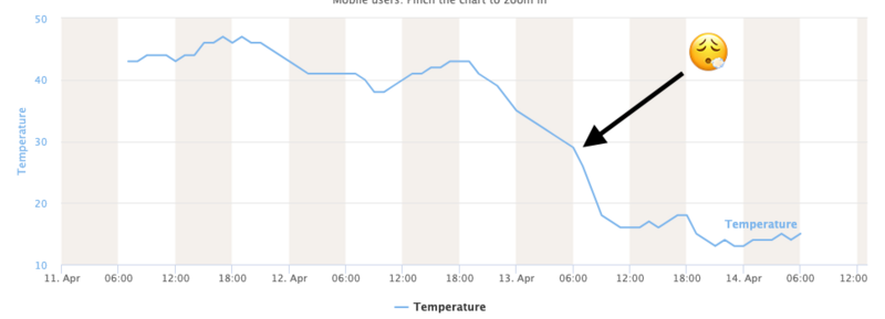 This Morning: After nearly four days of above-freezing temperatures, yesterday's cold front brought much-needed colder air and temperatures now range through the teens F. Winds are northerly and light. Skies are partly-cloudy. The temperature graph below from the Strawberry lift at Snowbasin at 9,200' shows the drop in temperatures with the arrival of colder air.
