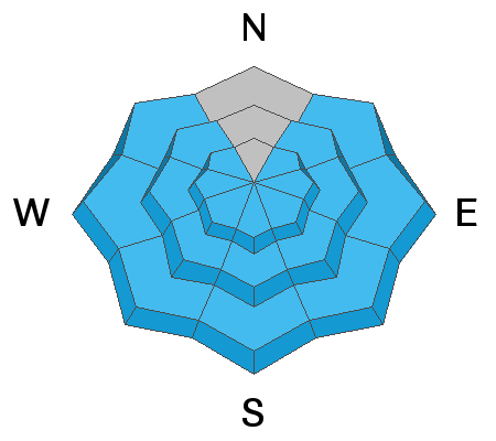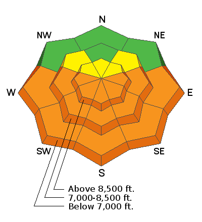 Skies are partly cloudy this morning with generally light westerly winds. The highest anemometers have speeds of 20-25mph with gusts near 30. Mountain temps are in the upper 20s to low 30s. For today, we'll see partly cloudy skies, light west to northwest winds and temps rising to near 40°F along the ridgelines and 50°F down low. Riding conditions have been quite good the past couple of days on the recent storm snow.