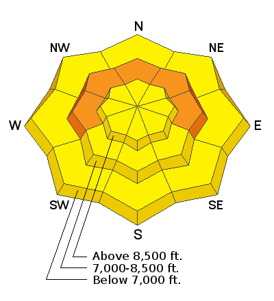 Skies are clear. Winds are west to northwest blowing 10-15mph with occasional gusts to 20. Overnight temperatures are sweltering and received only the barest of refreezes. 5am temps are in the low 30s along the upper elevations and low 40s in the mid-elevation thermal belt. Any supportable crusts will be quickly "less so" with today's initial sunny skies and searing temps. We'll see high clouds that'll thicken by the late afternoon/early evening. Ridgetop temps are expected to skyrocket to near 40°F by the afternoon. Many base areas and trailheads may reach 60°F by the afternoon. All aspects and elevations will suffer damage from today's sun and heating. Whew.