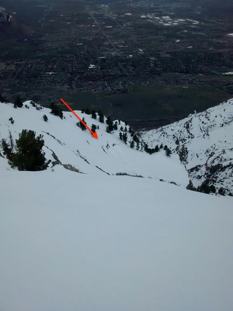 GLIDE CRACKS have been noted in the Cutler Ridge and Ben Lomond area. These glide cracks can sometimes release catastrophically (glide avalanches), pulling out the entire winter's snowpack to the ground, leaving large debris piles. Avoid being beneath these opening glide cracks. photo below of glide cracks -
