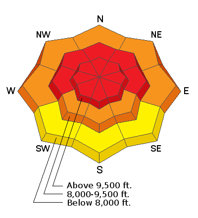 The avalanche danger is HIGH on all steep slopes at the upper elevations, where human-triggered slab avalanches are likely. The avalanche danger is also HIGH on mid-elevation steep slopes facing west, through the north, through east. We have very dangerous avalanche conditions. Slab avalanches 1-3 feet deep hundreds of feet wide are likely. These are unsurvivable avalanche conditions.