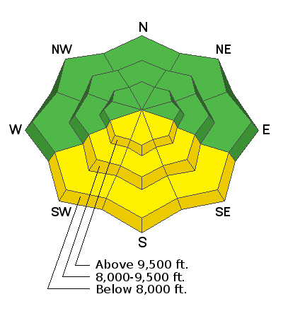 Current mountain temperatures at the mid and upper elevations (8,000'-9,000') are reading 40°- 45° F with no overnight refreeze. Lower elevation (6,800') temperatures are below freezing and reading 30°F. Temperatures are forecasted to rise into the mid 50's °F at 9,000' this afternoon. Who brought the hairdryer to the powder show???