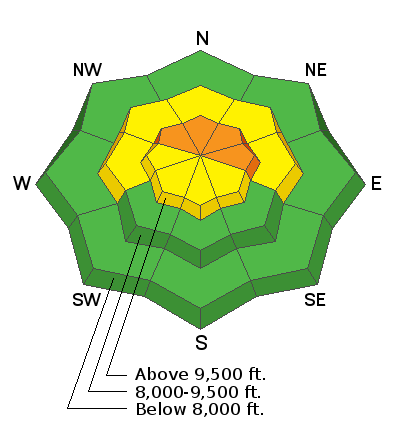 Slopes at low elevations and south-facing slopes mid-elevations, simply don't have enough snow to ride and hardly enough snow to create an avalanche, thus they have a LOW danger.