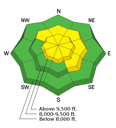 - Wet loose sluffs can be triggered on steep, sunny slopes if the snow becomes damp, serious if they push you over a rock band or into a gully.