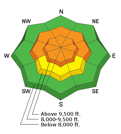 The remaining mid-elevation aspects have a MODERATE danger. All lower elevation aspects have a LOW danger due to low snow.