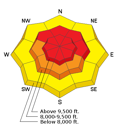 Do not travel on or below slopes approaching 30 degrees or steeper on mid and upper elevation aspects facing northwest through east.
