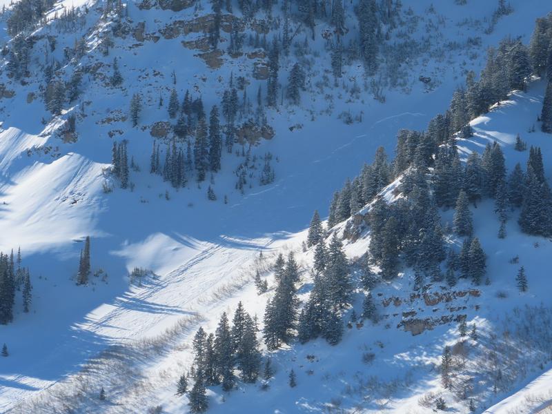 The Provo area mountains experienced a widespread avalanche cycle late weekend into early Monday. Enough snowfall (1-1.30"SWE) and wind tipped to balance to produce numerous soft and hard slab avalanches failing 1-3' deep on our November PWL (persistent weak layer) of weak sugary facets. These avalanches were primarily in the upper elevations on north through east aspects. Thanks much to UDOT Provo canyon for the photos from the UFO Bowls and high on Timpanogos.