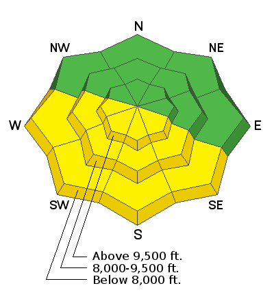 The avalanche danger is MODERATE on all steep slopes facing southeast, south, southwest and west for wet snow avalanches. Natural and human triggered slides will be possible.