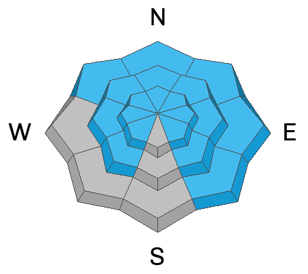 The avalanche danger is CONSIDERABLE on slopes at the mid and upper elevations facing west, northwest, north, northeast, east, and southeast. Here, slab avalanches may break down several feet deep into weaker layers in the snowpack.