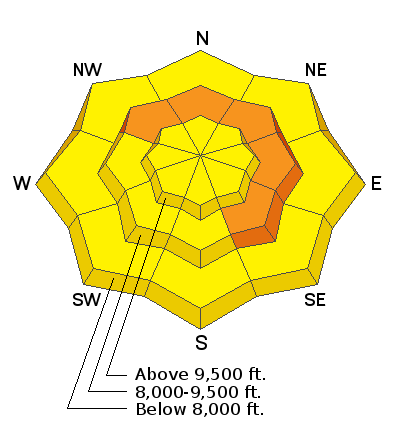 Skies are overcast with overnight "lows" in the mid to upper-40s. Many stations remain at or near yesterday's highs. The winds backed to the south-southwest overnight and are blowing 15-20mph with gusts to 25. The most exposed anemometers are spinning 30-35mph with gusts to 50. It's our second night with a poor-if at all-refreeze and snow supportability will be spatially variable at best. In many areas, you'll sink up to your knees even with skis or snowshoes. Picture trenching on a sled. At least the initial precipitation today will fall as rain to 9500'. If there was ever a day to work on your taxes, this is that day. Probably best to stay on groomed, heavily packed, or low angle terrain, or rest up for some powder skiing and riding over the next few days.