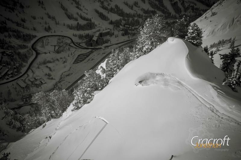 In Banana Days of Big Cottonwood, a skier was reportedly chased down the steep, confined slope by cornice fall but was a non-event.