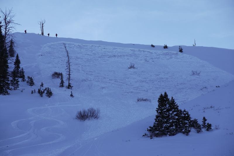 - Park City ridgeline central section: 9600' Northeast facing: skier remotely triggered avalanche 1.5' deep and 200' wide. (pc: Young)