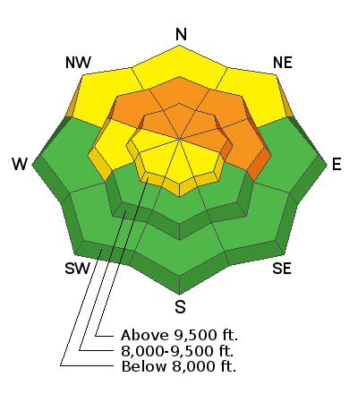 - IF you want to ride terrain on the northerly side of the compass, you must choose low angle terrain with no overhead hazard. (You might trigger the avalanche on top of yourself.)