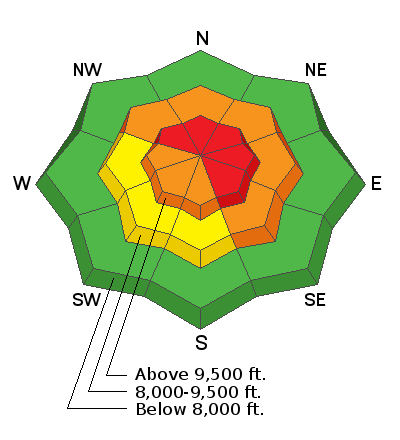 There is a CONSIDERABLE avalanche danger on steep slopes between 8,000'-9,500' that face northwest through southeast; and on steep slopes facing south, southwest, and west at upper elevations, for triggering slab avalanches 1-3' deep. Careful snowpack evaluation, cautious route-finding, and conservative decision-making will be essential. Avalanches can be triggered from a distance.