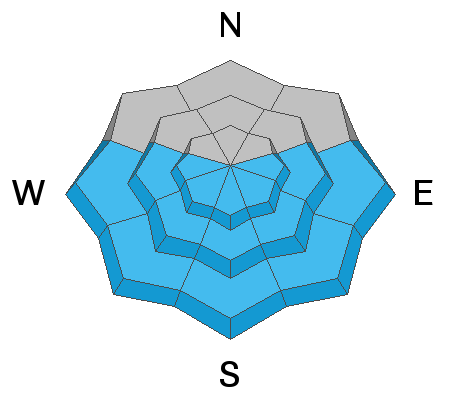 The best and safest riding conditions exist on low angle wind and sun sheltered terrain.
