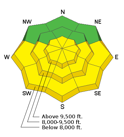 Side Note #1: the aspect/elevation rose can be misleading as it applies to topography. Mid-elevation ridgelines can be significantly more wind loaded and dangerous than mid-slopes below terrain with greater relief...even though they are the same elevation. In other words, Reynolds Peak (at 9400') can be way more wind loaded than mid-slope Cardiac Ridge.