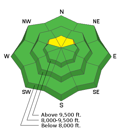 The avalanche danger is MODERATE on steep upper elevation slopes facing northwest through north through northeast, where slab avalanches failing on the old dry snow can be triggered. Other terrain has a LOW avalanche danger, though small sluffs and soft slabs can be triggered, especially this afternoon during periods of snowfall or increased wind. Avoid spending time beneath cornices, glide cracks and steep roofs.