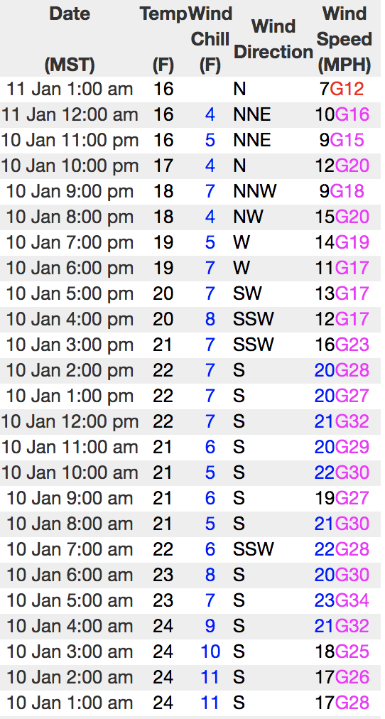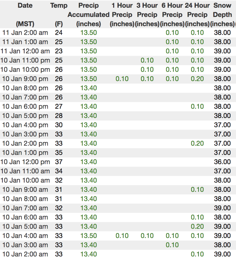 Above is hourly data from Chalk Creek (9,169') along with recent wind data from Windy Peak (10,662'). To view more regional weather stations click here.