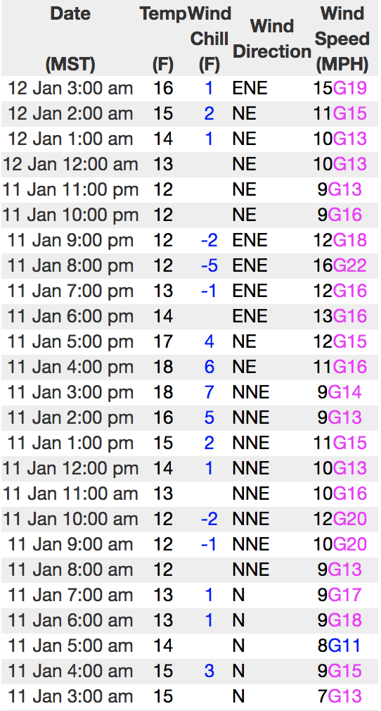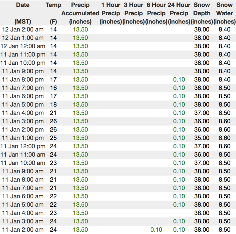 Above is hourly data from Chalk Creek (9,169') along with recent wind data from Windy Peak (10,662'). To view more regional weather stations click here.