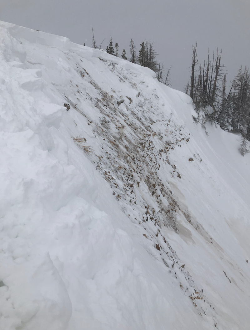 Fact is, winds have blown in the 40's and 50's for days and they've been all over the map, loading terrain in unusual locations and depositing snow further down-slope than we usually expect to see. Yep... winds changed the landscape and have created tricky avalanche conditions. With all the great riding right now there's no reason to pull on the dogs tail today, because once initiated, today's drifts will break deeper and wider than you might expect, creating a slide that quickly gets out of hand. Your best bet for avoidance is to simply steer clear of any fat, rounded piece of snow, especially if it sounds hollow like a drum.