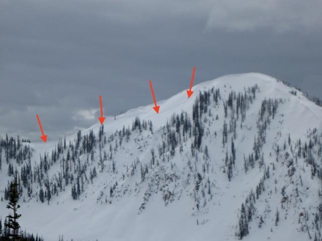 It's a fact, snowpro and avy-savvy forecaster, Ted Scroggin, is our main man with the western Uinta plan. And yesterday Ted was stomping around the Double Hill area and spotted this couple day old, rather meaty pocket on Moffit Peak. Ted know the western Uinta's like no other and his solid insights on how the place works are found HERE.