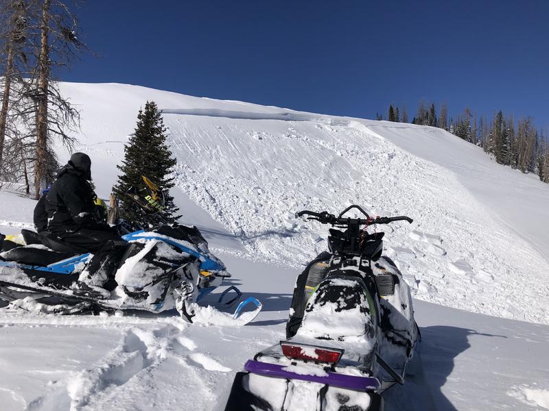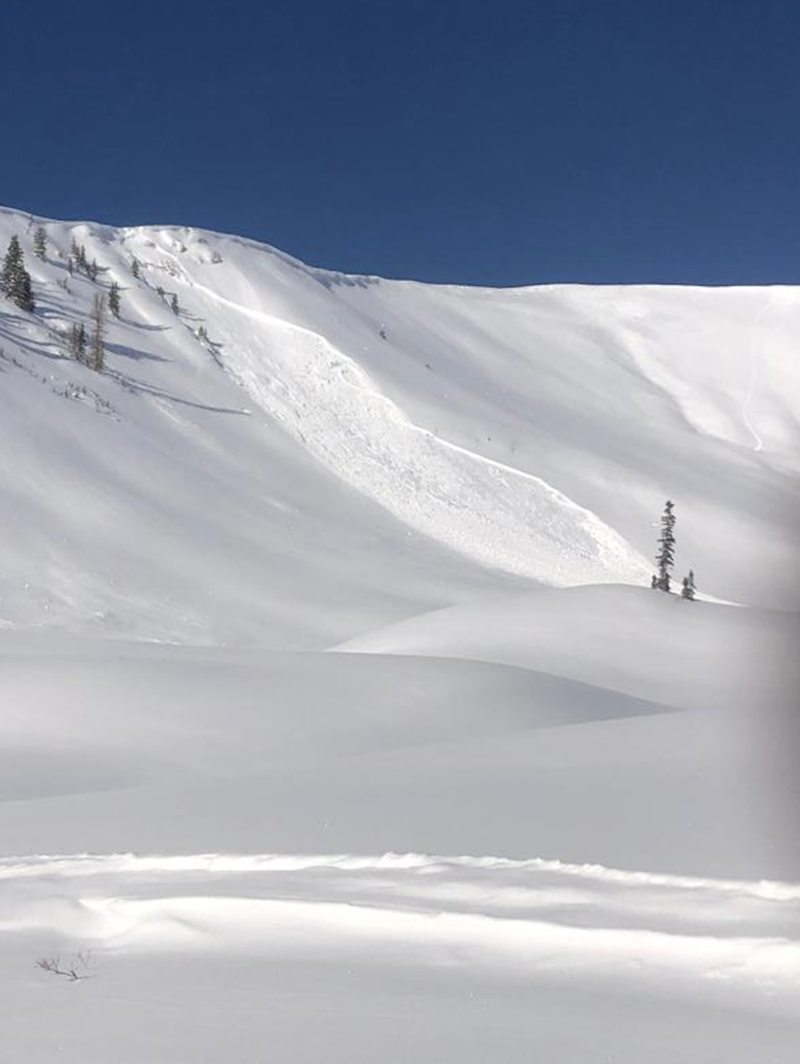 Meanwhile on the south end of the range near Blind Stream, riders found touchy conditions and reported... "Biggest avalanche we have seen in this area. We knew avalanche danger was high so we were being careful but triggered this one side-hilling down low on the hill."