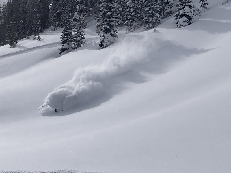 Forecast- Another shot of moisture keeps the powder party rolling and we should stack up an additional 3"-6" inches, beginning right around sunrise through mid morning. Winds remain rather well-behaved and temperatures climb into the mid 20's. Wrap around moisture late in the day could help enhance snowfall right around dinnertime.