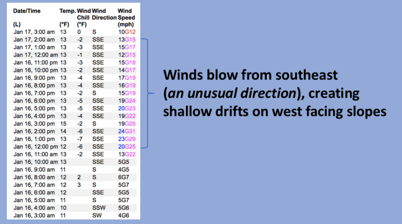 24 hour data dump from Windy Peak(10,662') shows recent run of southeast winds.