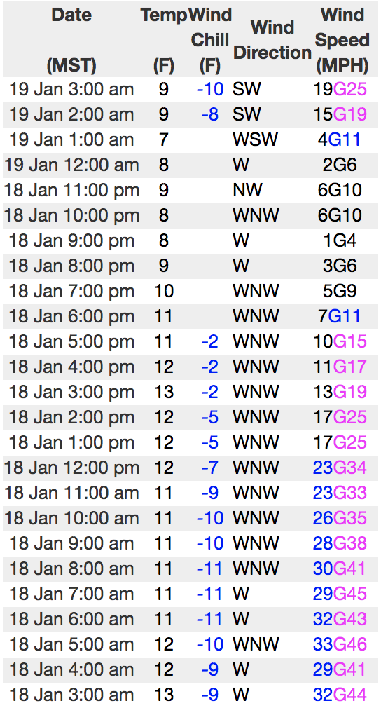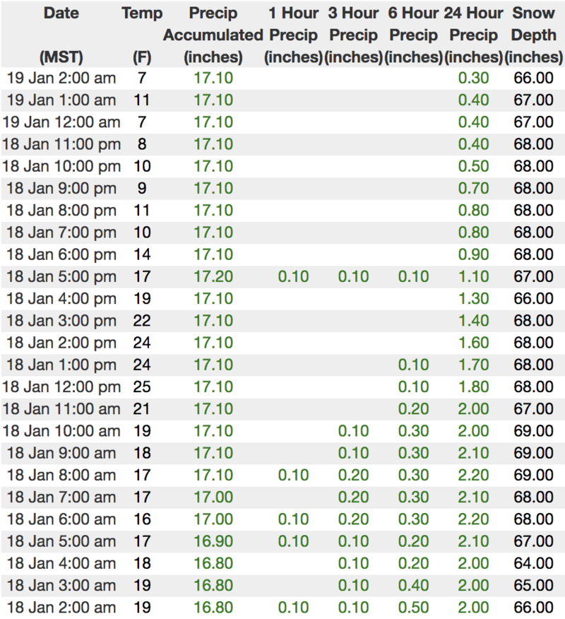 Above is hourly data from Trial Lake (9,945') and Windy Peak (10,662'). To view more regional weather stations click here.