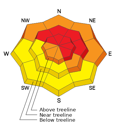 Not as widespread as a few days ago, HIGH avalanche danger still exists on steep, upper elevation slopes and it's particularly sketchy on leeward slopes in the windzone at and above treeline. Human triggered avalanches breaking to deeply buried weak layers are LIKELY in terrain facing the north half of the compass, and especially on slopes with an easterly component to its aspect. Note to self... if I trigger an avalanche it could result in a large and potentially unsurvivable slide.