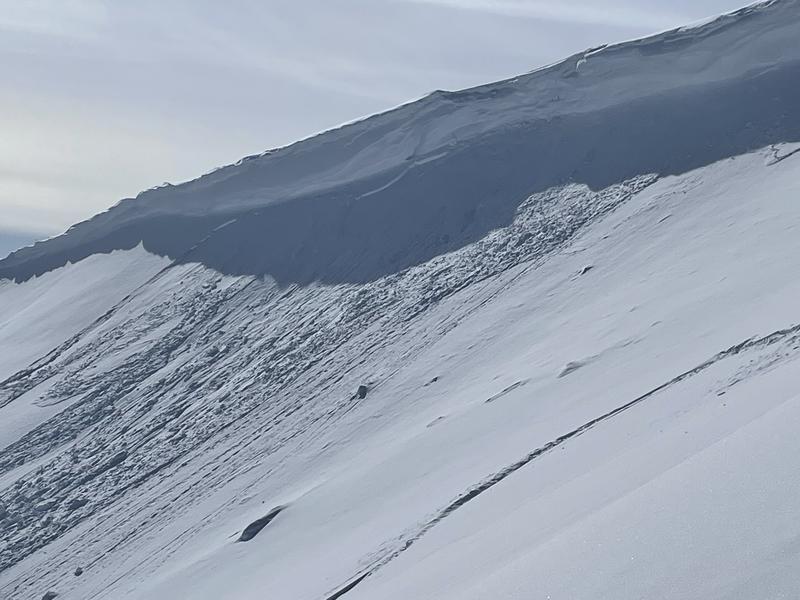 There's no shortage of snow available to blow around and recent winds have no problem whipping up a fresh round of shallow drifts sensitive to our additional weight. Found on upper elevation leeward slopes all over the compass, they're manageable in size and manageable by avoidance... lose a little elevation, you lose the wind and you lose the problem.