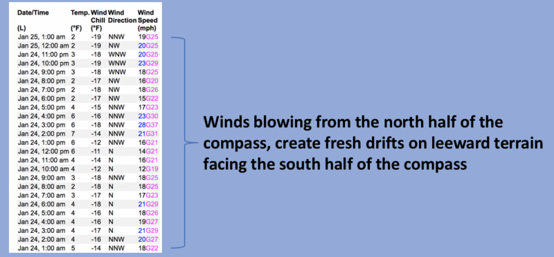 Windy Peak (10,662') 24 hour data dump shows this remote weather site is not as excited as I am to go to work... slacker. None-the-less, winds blowing from the west, north, and northwest, load a variety of slopes on the south half of the compass.