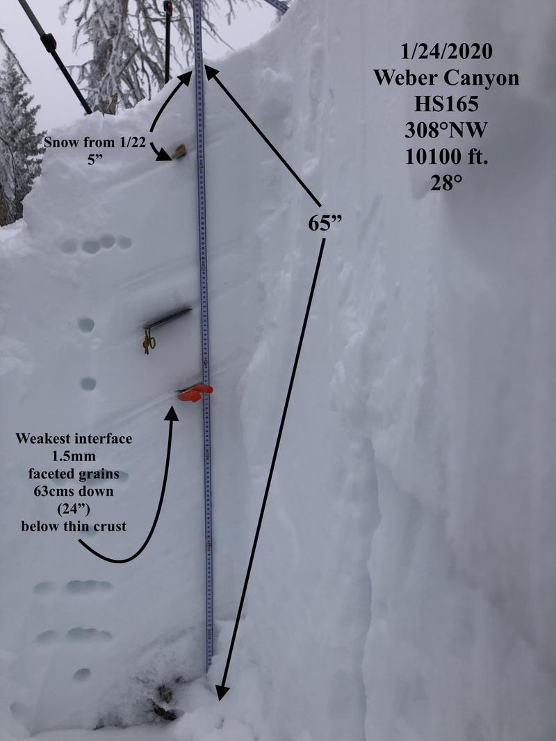 JG's beautiful snowpit profile clearly illustrates the state of our snowpack and with 65" of settled snow, we should be psyched! More on JG's travels found here.
