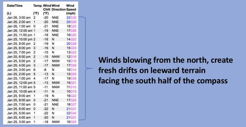 Forecast- Expect partly cloudy skies and slightly warmer temperatures, but we're still stuck in the deep freeze with daytime highs only reaching into the low 20's. Finger numbing northerly winds blow in the 30's near the high peaks.