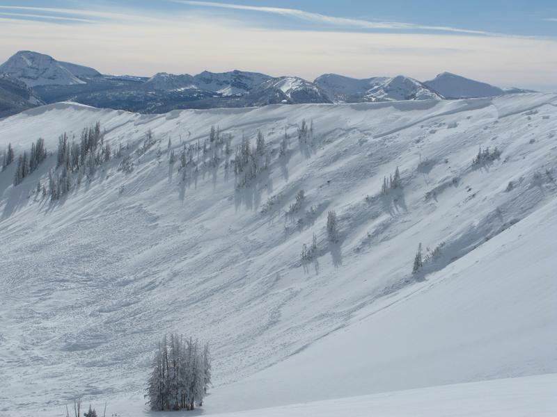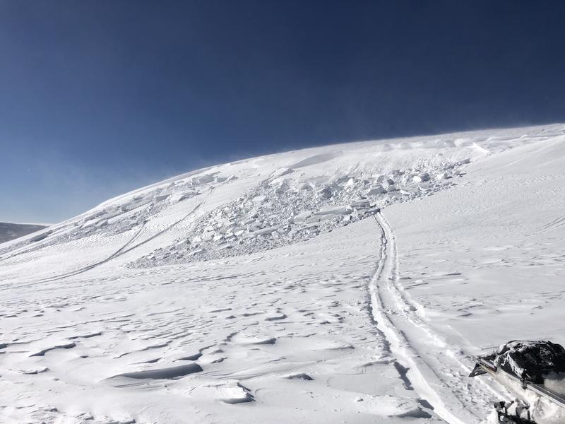 A recently windloaded slope reacted to the additional weight of a rider yesterday on the south half of the range near Heber Mountain. Remember to look around as you ride today and think, the hugest clue to unstable snow is recent avalanches on the same kind of terrain you want to ride on.