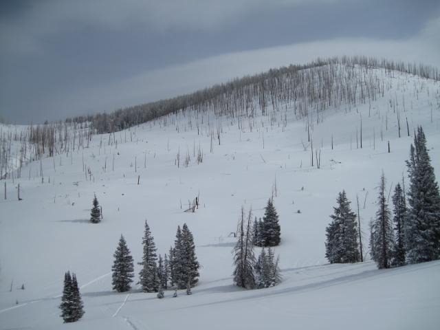 Nowcast- Yesterday's shot of moisture had its sights set on the North Slope, delivering 6" of low density snow whilst the south half of the range from Trail Lake to Daniels, stacks up half that amount. In either case, storminess continues churning away over the eastern front and light snow continues falling early this morning. We're out of the deep freeze for the moment as temperatures register in the teens and low 20's. Westerly winds have calmed down somewhat since yesterdays onslaught and currently blow 15-25 mph along the high peaks. Fresh snow has greatly improved the riding and turning conditions as the snowpack seeks to retain its five star rating.... (three on the Michelin scale :)