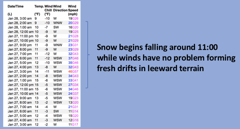 The one-two combo of storm snow and wind created very sensitive drifts reactive to my additional weight yesterday. I don't think today's drifts are gonna be quite as touchy today, but could catch you by surprise none-the-less, breaking deeper and wider than you might expect. Found on mid and upper elevation leeward slopes facing the north half of the compass and cross-loaded in chutes and gullies, both old and newly formed drifts are easy to navigate around by avoidance... simply lose a little elevation, you lose the wind, and you lose the problem.