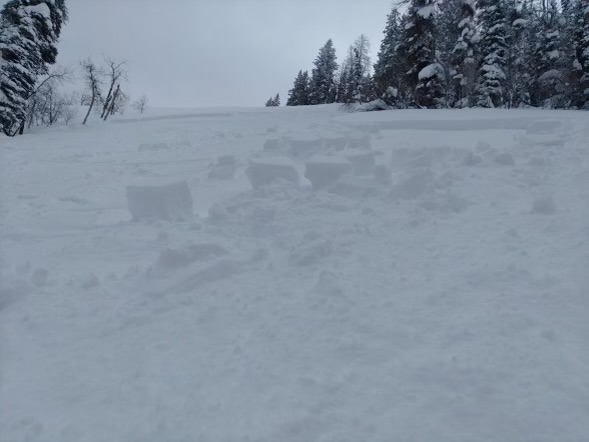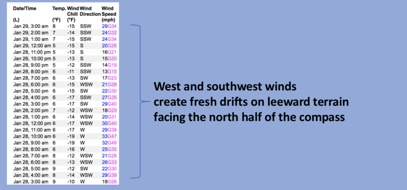 The one-two combo of storm snow and wind created very sensitive drifts reactive to the weight of a rider Saturday and that trend continues today. As today's storm materializes, drifts are gonna become more widespread, more touchy, and could catch you by surprise, breaking deeper and wider than you might expect. Found on mid and upper elevation leeward slopes facing the north half of the compass and cross-loaded in chutes and gullies, both old and newly formed drifts are easy to navigate around by avoidance... simply lose a little elevation, you lose the wind, and you lose the problem.