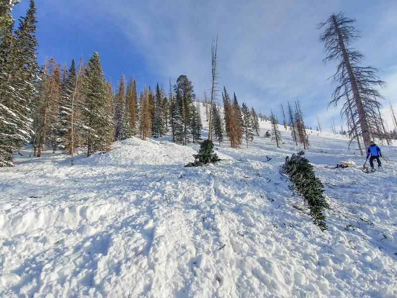 4' feet deep and 500' wide, the slide above was triggered Sunday near Hoyt Peak. We are of course happy everyone came out unscathed, but we're running out of luck, and there's not many empty chambers left.