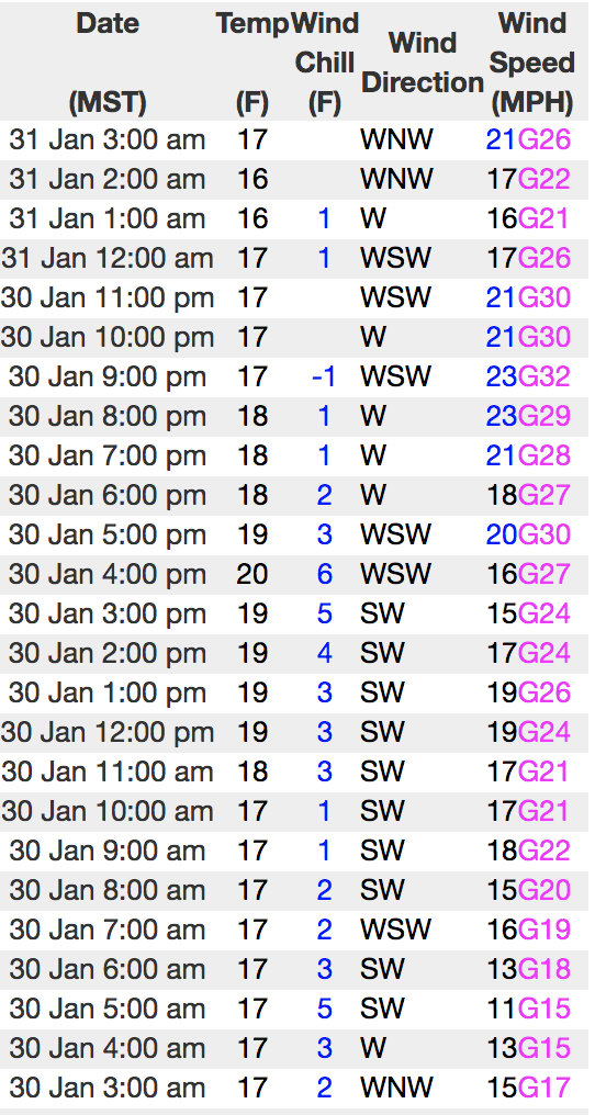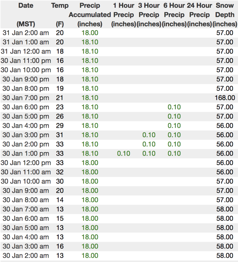 Above is hourly data from Trial Lake (9,945') and Windy Peak (10,662'). To view more regional weather stations click here.