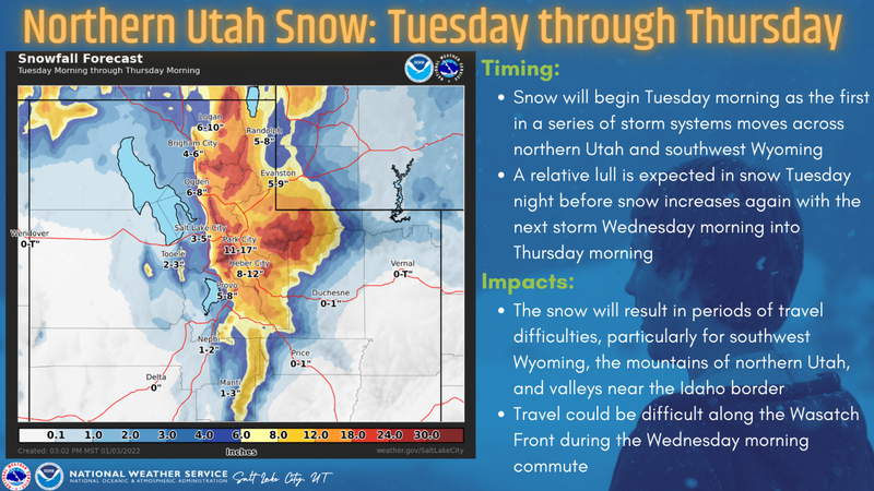 A better shot of snow and water are on tap for Wednesday morning through a good portion of the day. Storm totals by late Thursday should be in the 12"-24" range.