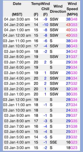Above is a 24 hour data dump from Windy Peak (10,661')
