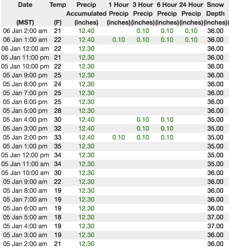 Above is recent hourly data from Trial Lake (9,945') along with wind data from Windy Peak (10,662'). To view more regional weather stations click here.