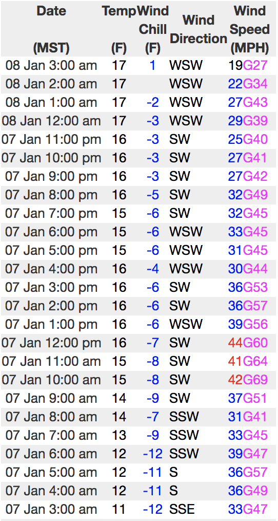 Above is hourly data from Trial Lake (9,945') along with recent wind data from Windy Peak (10,662'). To view more regional weather stations click here.
