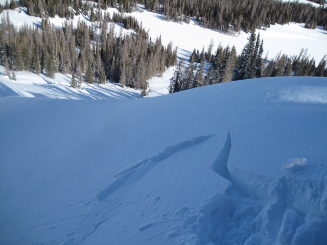 Look for shooting cracks in the snow like in the image above, which is a sure sign of unstable conditions.