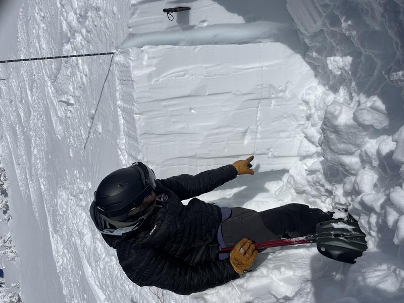 My colleague Andrew Nassetta (snow-pro, avy forecaster, and educator of all things avalanche extraordinaire) points to our PWL now deeply buried and getting harder to provoke.