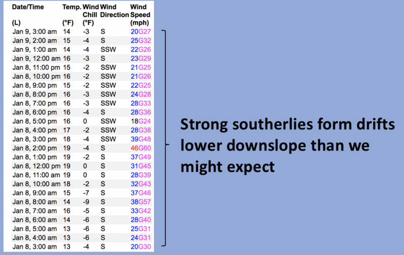 There's no shortage of snow available to blow around and form fresh drifts that'll react to our additional weight. Found mostly on the leeward side of upper elevation ridges, I wouldn't be too surprised to find drifting around terrain features like chutes and gullies. In either case, the key to riding safely is simply avoiding fat rounded pillows of snow, especially if they're sounding hollow like a drum.